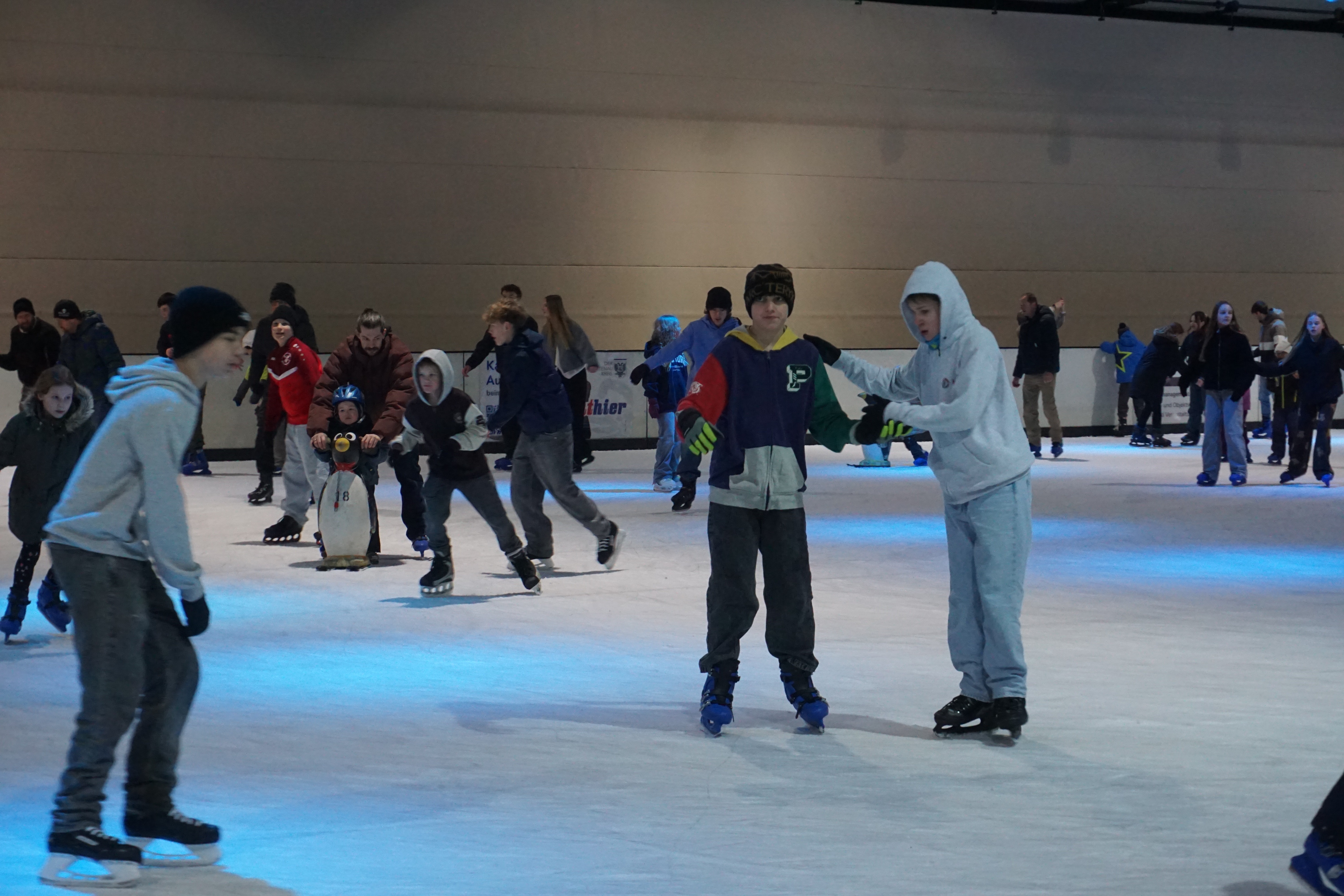 Am 17.01.2025 stand unser Eislaufevent auf dem Programm. Gemeinsam machten wir uns auf den Weg zur Eislaufhalle an der Messe in Offenburg. Vor Ort konnten sich alle, die keine eigenen Schlittschuhe hatten, unkompliziert welche ausleihen – und dann ging es auch schon aufs Eis. Während einige sofort mit ordentlich Tempo ihre Runden drehten, tasteten sich andere zunächst vorsichtig am Rand entlang. Doch schnell fanden alle ihren Rhythmus, und die Halle füllte sich mit Gelächter, Zurufen und viel Bewegung. Stürze wurden mit Humor genommen und gegenseitiges Helfen gehörte ganz selbstverständlich dazu. Insgesamt war es ein sehr lustiger, lockerer Tag, der bei allen richtig gut ankam und Lust auf eine Wiederholung machte.