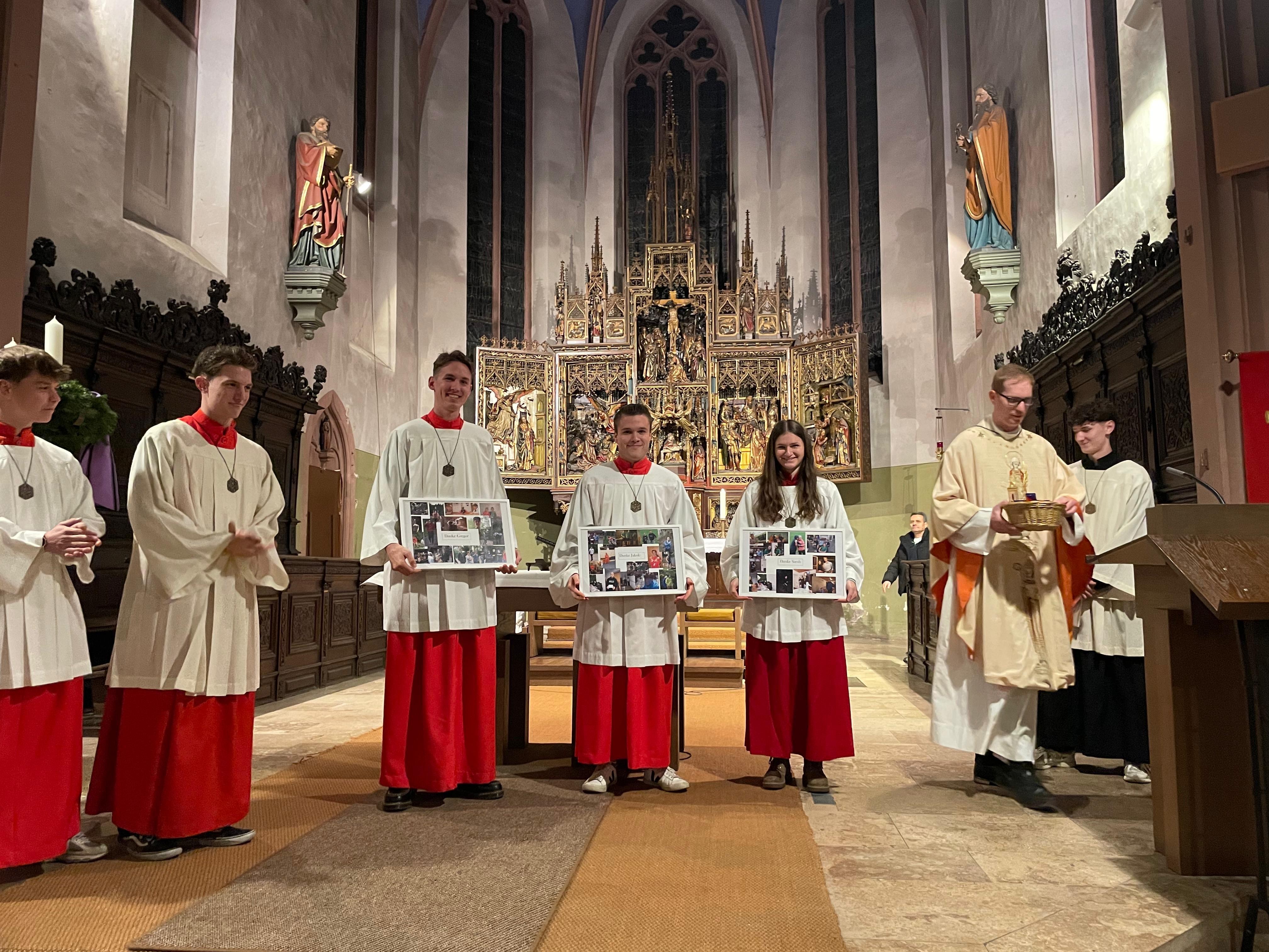 Am 05.12.2025 feierten wir unsere diesjährige Adventsfeier – ein besonderer Abend voller Gemeinschaft und schöner Momente. Den Auftakt bildete ein feierlicher Gottesdienst, in dem wir die Leiter*innen Gregor, Jakob und Sarah verabschiedeten und ihnen für ihr großes Engagement dankten. Anschließend kamen die Ministrant*innen gemeinsam mit ihren Familien im Pfarrzentrum zusammen. Dort wartete bereits ein liebevoll vorbereitetes Salatbuffet, ergänzt durch leckere Schnitzel, sodass für alle bestens gesorgt war. Ein fester und besonders geschätzter Programmpunkt war der alljährliche Jahresrückblick. Gemeinsam ließen wir die vergangenen Monate Revue passieren, erinnerten uns an Highlights, Aktionen und gemeinsame Erlebnisse und schwelgten in vielen schönen Erinnerungen. Die Adventsfeier bot einen gelungenen Rahmen, um das Jahr gemeinsam abzuschließen, Danke zu sagen und die Gemeinschaft der Minis zu feiern.